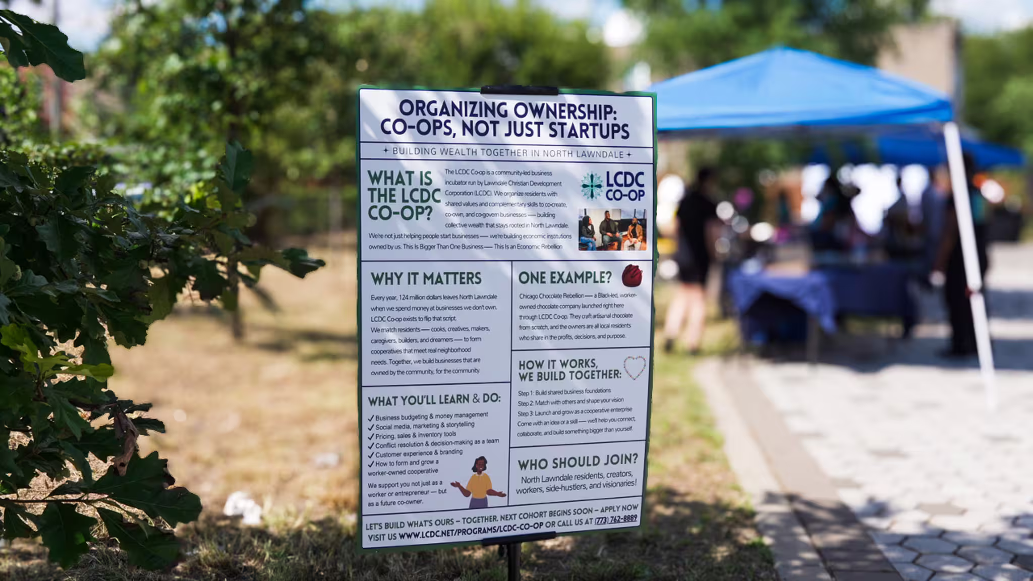 Every year, over $124 million leaves North Lawndale through spending at businesses we don’t own. LCDC Co-op flips that dynamic by helping residents start cooperative businesses that build lasting local wealth, create good jobs, and ensure the people doing the work also own the business.