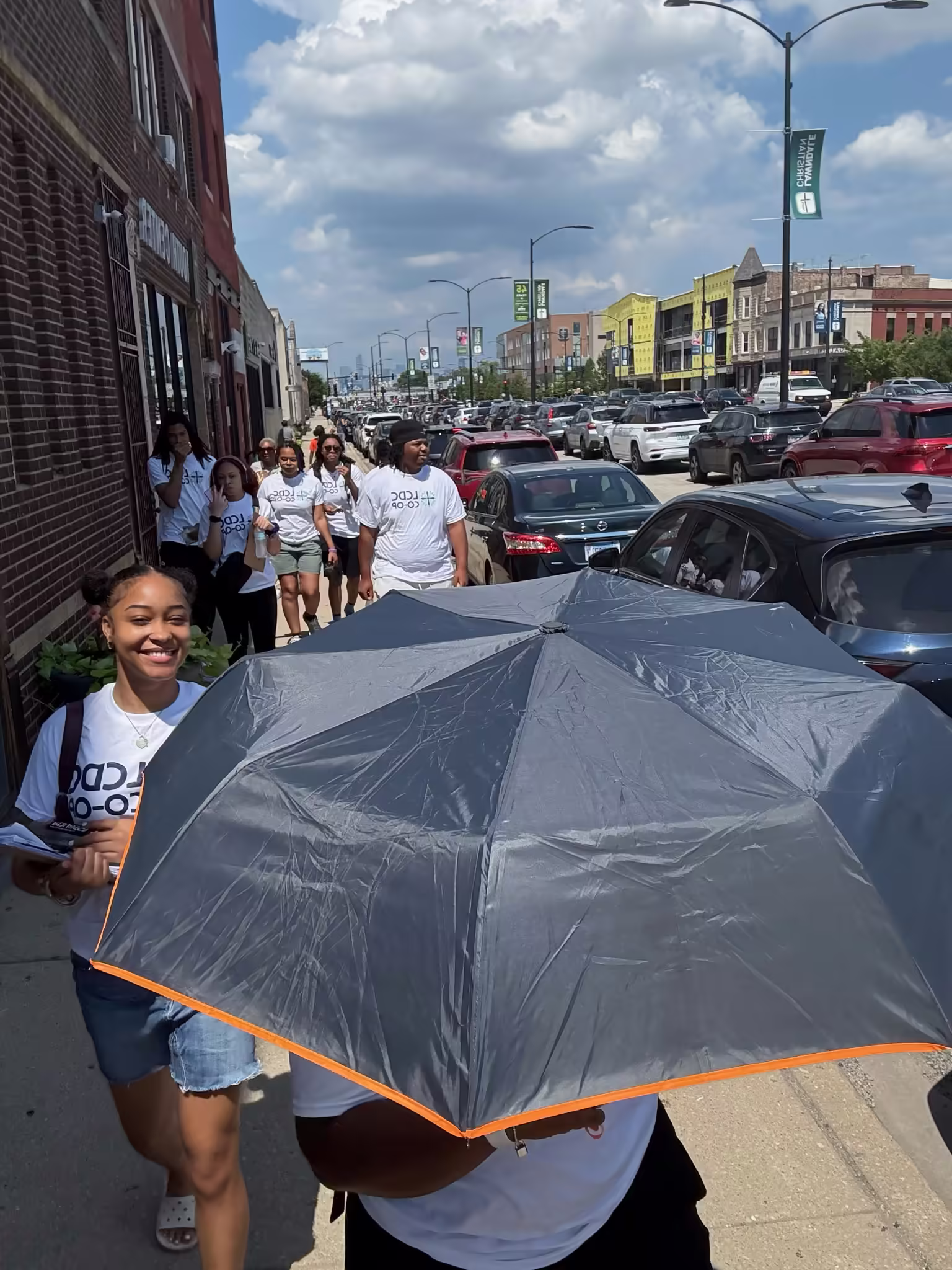 Every summer, LCDC Co-op trains and hires high school and college students to canvass North Lawndale block by block, listening to neighbors and inviting them into the cooperative vision. These fellows are the heartbeat of our organizing strategy — walking over 547,000 steps, knocking hundreds of doors from Kedzie to Pulaski, 15th to 23rd, and anchoring conversations in places like The Soul Food Lounge, Lawndale Christian Health Center, and parks along Historic Route 66.